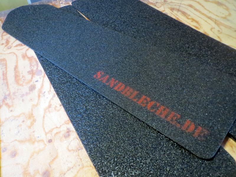Die kleine Beschriftung auf der Oberseite dient der Erkennung der Reifen zugewandten Seite. Alle Boards verfügen über eine 14mm Bohrung für ein Seil bzw. zur Befestigung