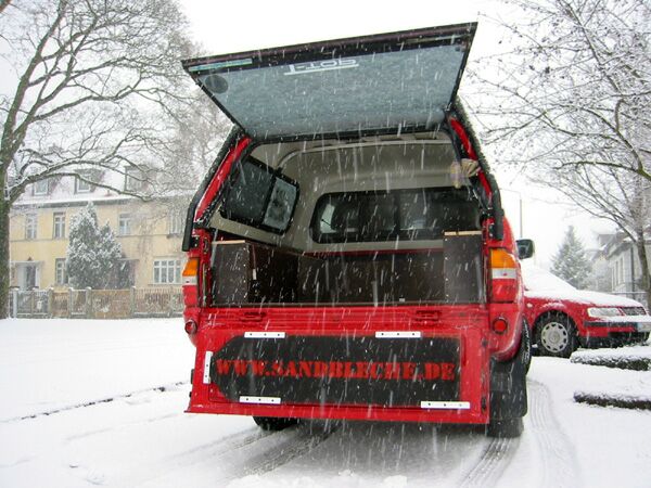 Die GFK-Boards sind angenehm dünn und verbiegen sich nicht dauerhaft. Man kann Sie also prima nach Befestigung einiger Baumarktprofile, z.B. in der Heckklappe, seitlich einschieben. Somit hat man natürlich den großen Nachteil, nicht von Ferne als Globetrotter erkannt zu werden.